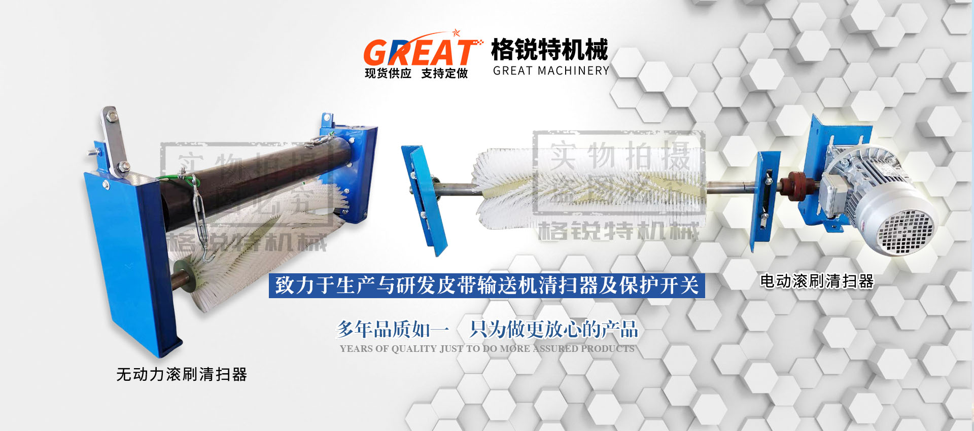 衡水格銳特機(jī)械科技有限公司常年致力于生產(chǎn)與研發(fā)皮帶輸送機(jī)清掃器及保護(hù)開(kāi)關(guān),其中主營(yíng)聚氨酯清掃器,合金清掃器,電動(dòng)滾刷清掃器,機(jī)械式滾刷清掃器,緩沖床,緩沖條,雙向拉繩開(kāi)關(guān),兩級(jí)跑偏開(kāi)關(guān),打滑檢測(cè)器,料流檢測(cè)器等保護(hù)開(kāi)關(guān),常年銷往各大水泥廠,煤礦廠,電廠,輸送機(jī)廠家,質(zhì)量?jī)?yōu)越,價(jià)格實(shí)惠,望各大領(lǐng)導(dǎo)及同行來(lái)廠參觀指導(dǎo),期待您的光臨!!!